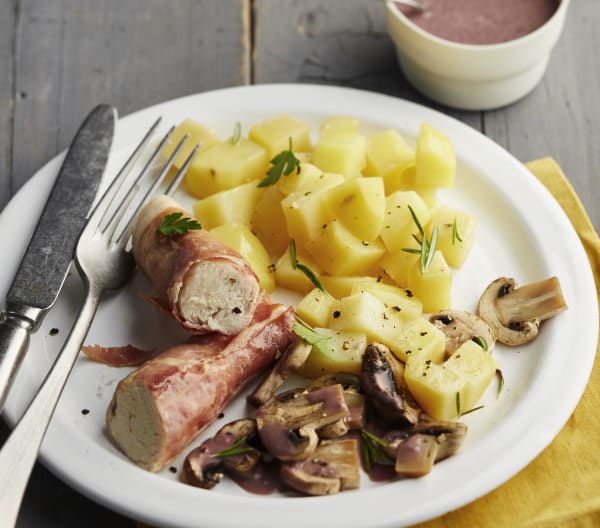 Poulet en robe de jambon, sauce chasseur